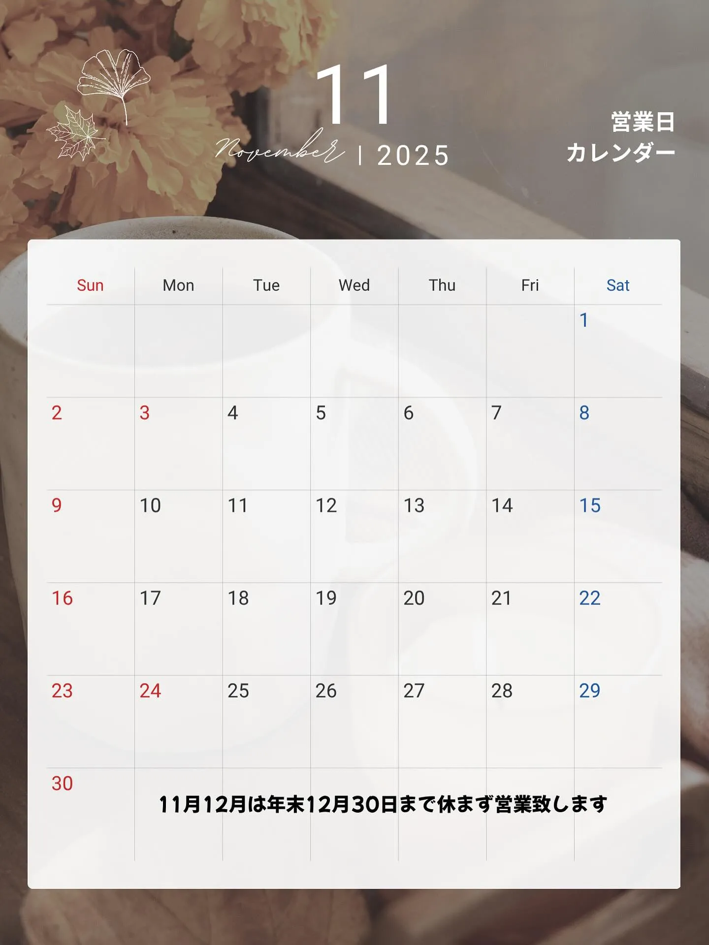 いよいよ今年も後2か月となりました